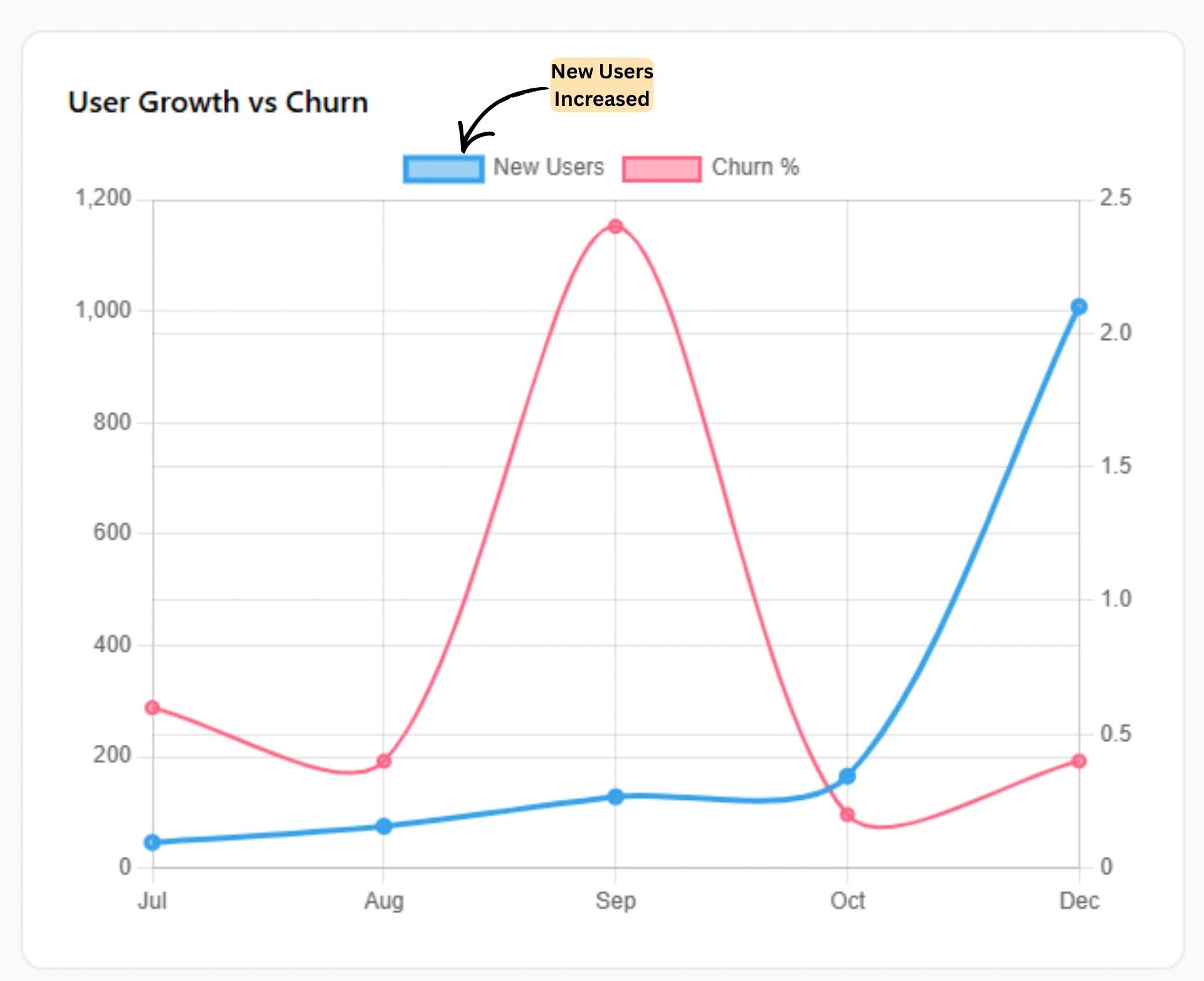 Achieved remarkable user growth of nearly 1900% while effectively reducing churn by over 79% from September to December.