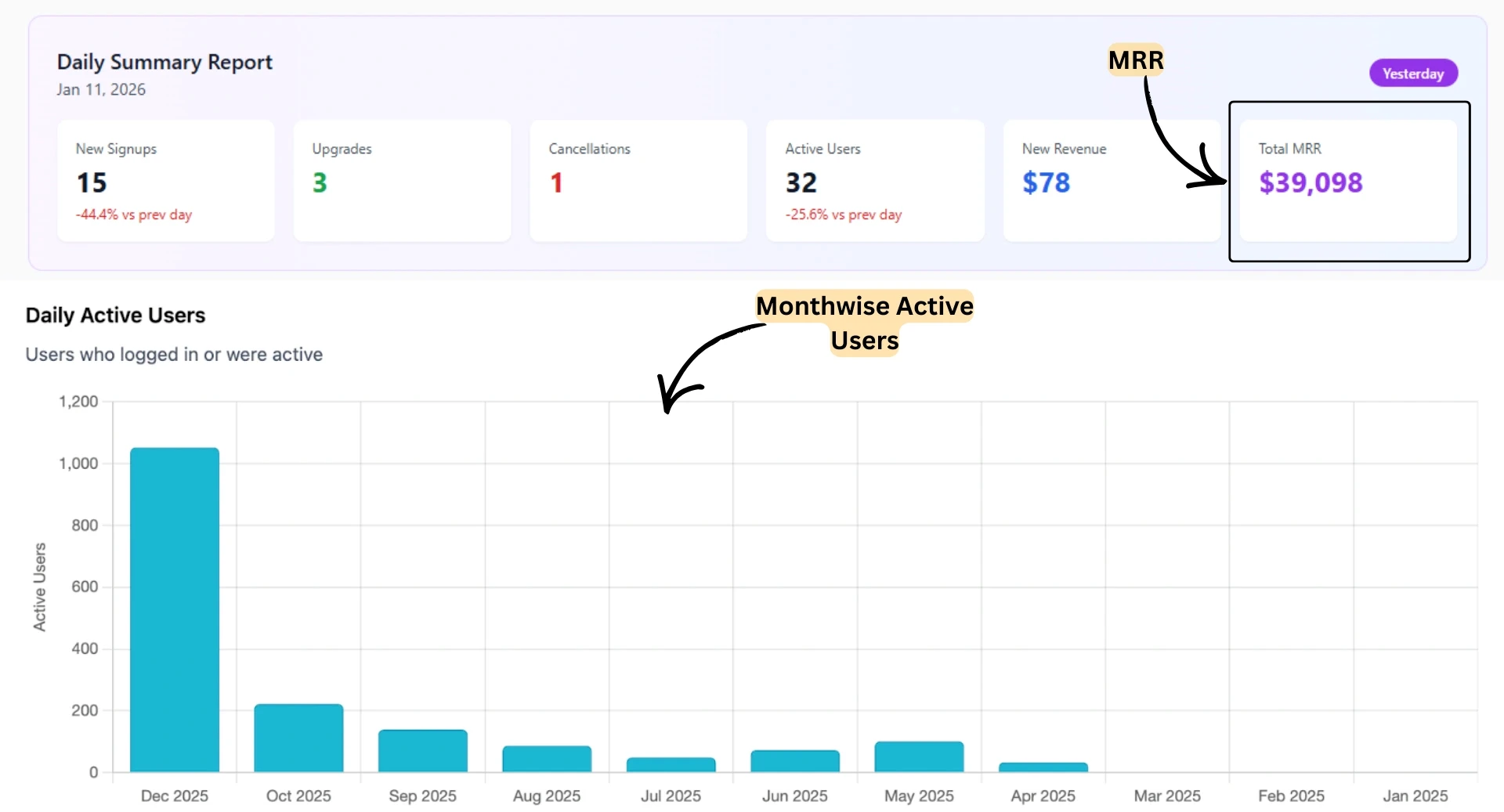 The total Monthly Recurring Revenue (MRR) is $39,098.